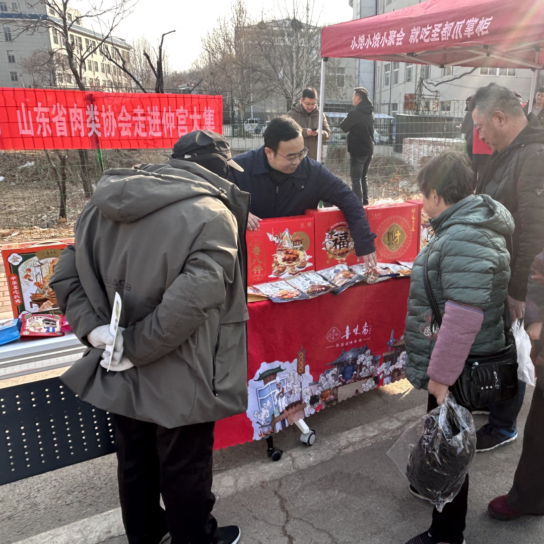 2025年2月25日,山东省肉类协会组织部分会员单位(得利斯、喜旺、圣都、鲁味斋、净香园),走进济南市仲宫大集,开展“共筑满意消费 3·15放心活动”。参展单位展示了各自的特色,引导广大人民群众食用安全、优质的肉类食品的消费意识,切实增强人民群众的获得感、安全感和幸福感。