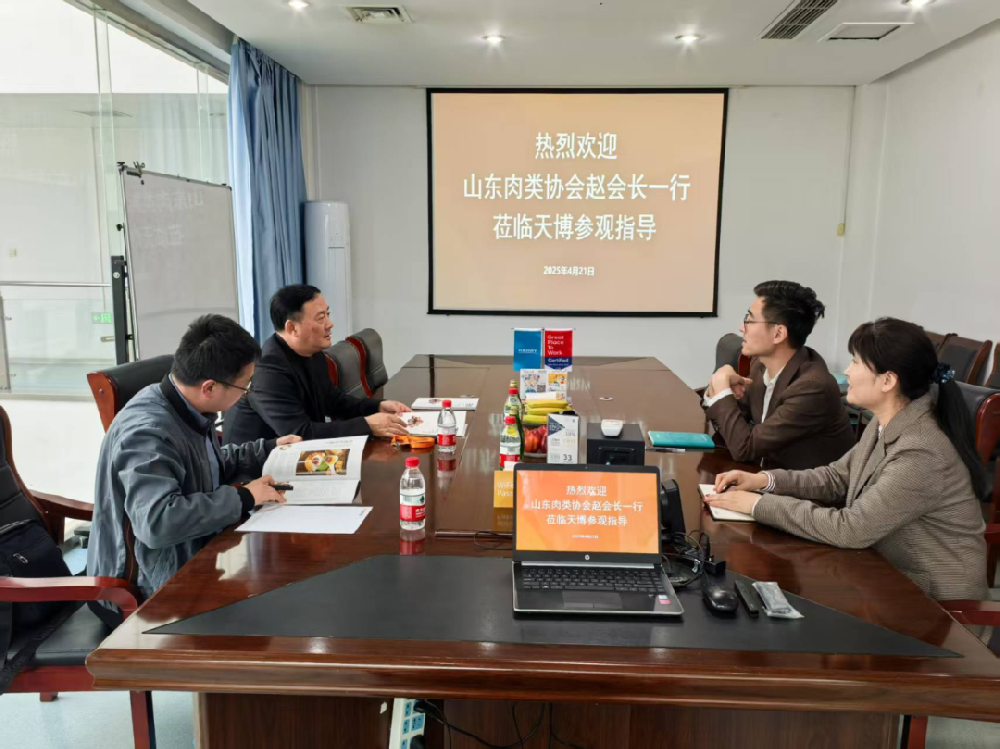 2025年4月21日,山东省肉类协会会长赵晓丹一行赴山东天博食品配料有限公司考察调研,受到公司市场负责人王云龙等有关领导的热情接待。
