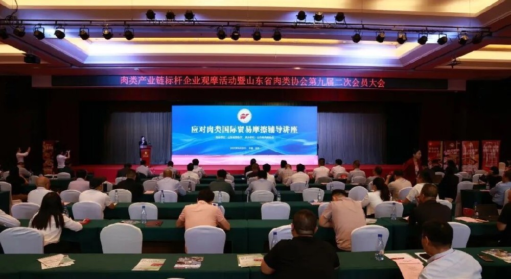 9 月 26 日,由山东省商务厅指导,山东省肉类协会主办的 “肉类行业应对国际贸易摩擦辅导讲座” 在青岛平度成功举办。平度市人大常委会党组副书记、副主任,平度市食品饮料招商产业链链长陈颖;山东省食品药品检验研究院食品总检验师王骏、山东省肉类协会会长赵晓丹等相关领导出席讲座。相关行业协会,高校院所、科研机构、知名企业负责人及协会会员代表近 200 人现场聆听,共同聚焦肉类行业国际贸易摩擦应对与企业出海发展关键议题。会议由山东省肉类协会秘书长许琛主持。