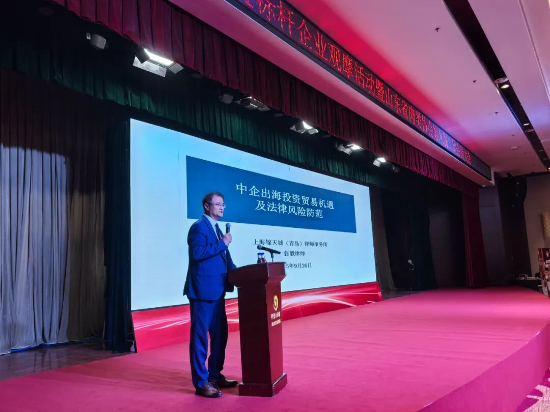 上海锦天城(青岛)律师事务所律师张毅、山东国曜琴岛(青岛)律师事务所律师宋荣荣分别围绕《中企出海投资贸易机遇及法律风险防范》《中企主要出口国家法律风险防范》进行了精彩的主旨讲座,内容兼具专业性与实用性,为在场企业代表带来了一场“及时雨” 般的知识盛宴。