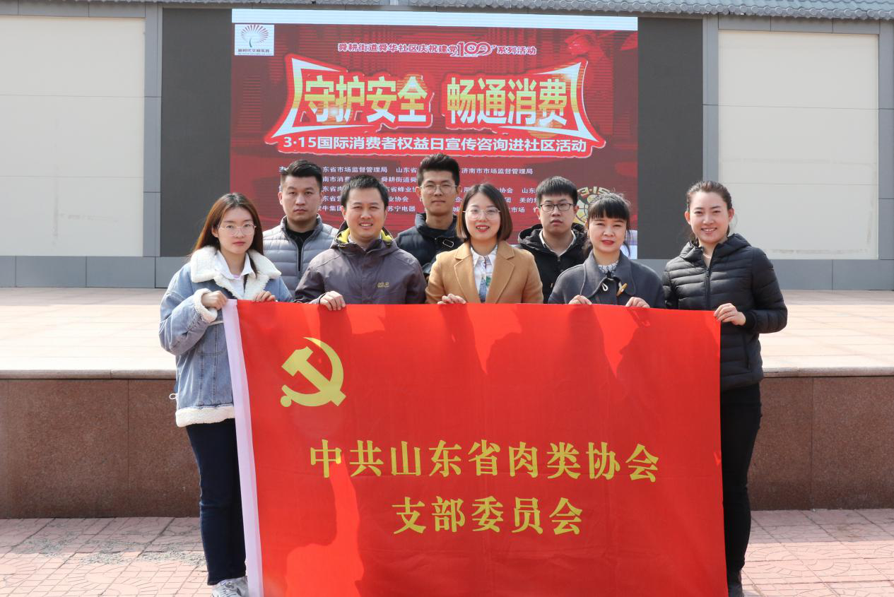 3月13日上午,在3.15国际消费者权益日到来之际,山东省肉类协会参加了由省市场监督管理局、省消费者协会、舜华社区居委会主办的以“守护安全 畅通消费”为主题的宣传咨询服务活动。