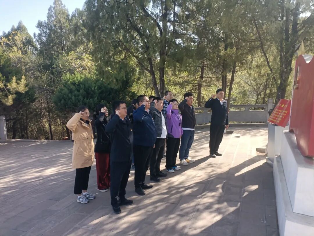 在宝塔山革命旧址,大家重温入党誓词,缅怀无产阶级革命家的丰功伟绩。